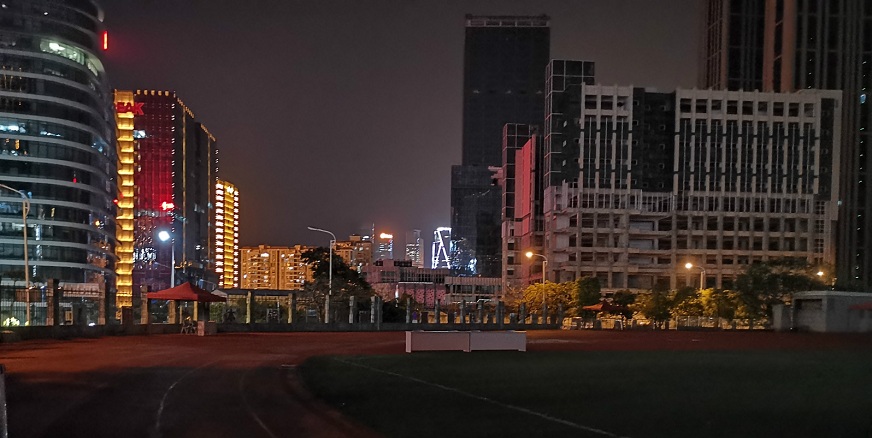由于本次比賽在學(xué)校的操場(chǎng)舉辦,所以工作人員只能等到學(xué)校清場(chǎng)后才能進(jìn)來(lái)布場(chǎng)。觀音山片區(qū)美輪美奐的夜景為乏味又冗長(zhǎng)的工作現(xiàn)場(chǎng)添上了一些樂趣。