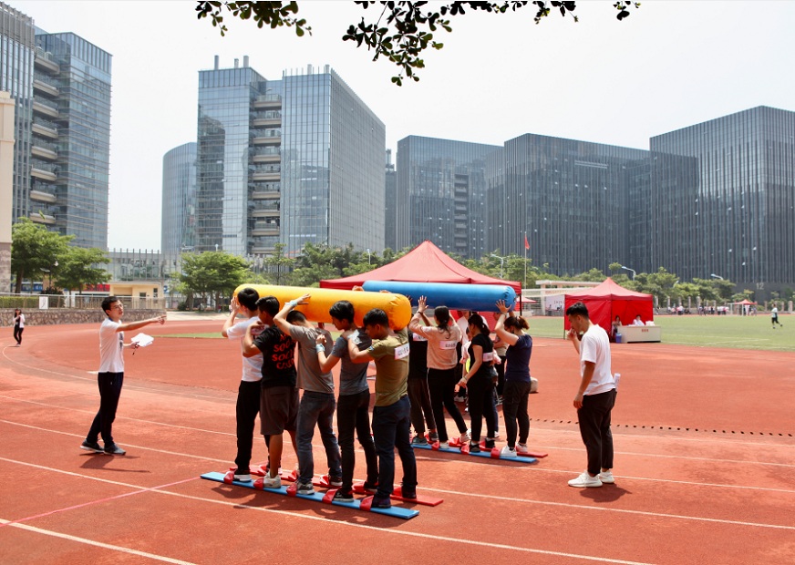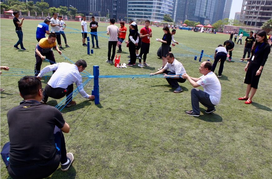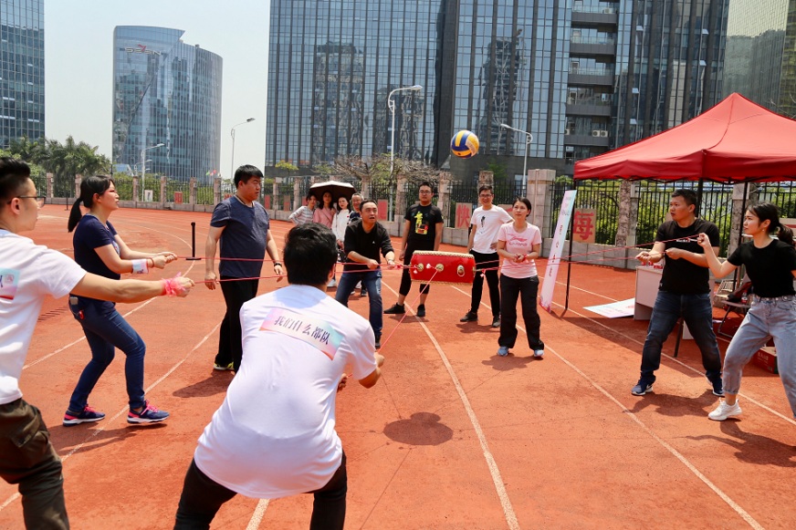 各隊(duì)的側(cè)重點(diǎn)各不相同。有的隊(duì)伍提前排兵布陣,并在關(guān)鍵時(shí)刻改變戰(zhàn)略,穩(wěn)中求勝。有的隊(duì)伍本著勇往直前的硬漢作風(fēng),風(fēng)風(fēng)火火的殺出一條血路。當(dāng)然其中也不乏嬌俏可人的娘子軍們,巾幗不讓須眉,在團(tuán)隊(duì)配合上力挽狂瀾。當(dāng)然也有的隊(duì)伍玩得很盡興,熱門項(xiàng)目“旱地龍舟”“無(wú)敵風(fēng)火輪”“不倒森林”“同心擊鼓”“合力建塔”“袋鼠跳跳跳”統(tǒng)統(tǒng)不落下。