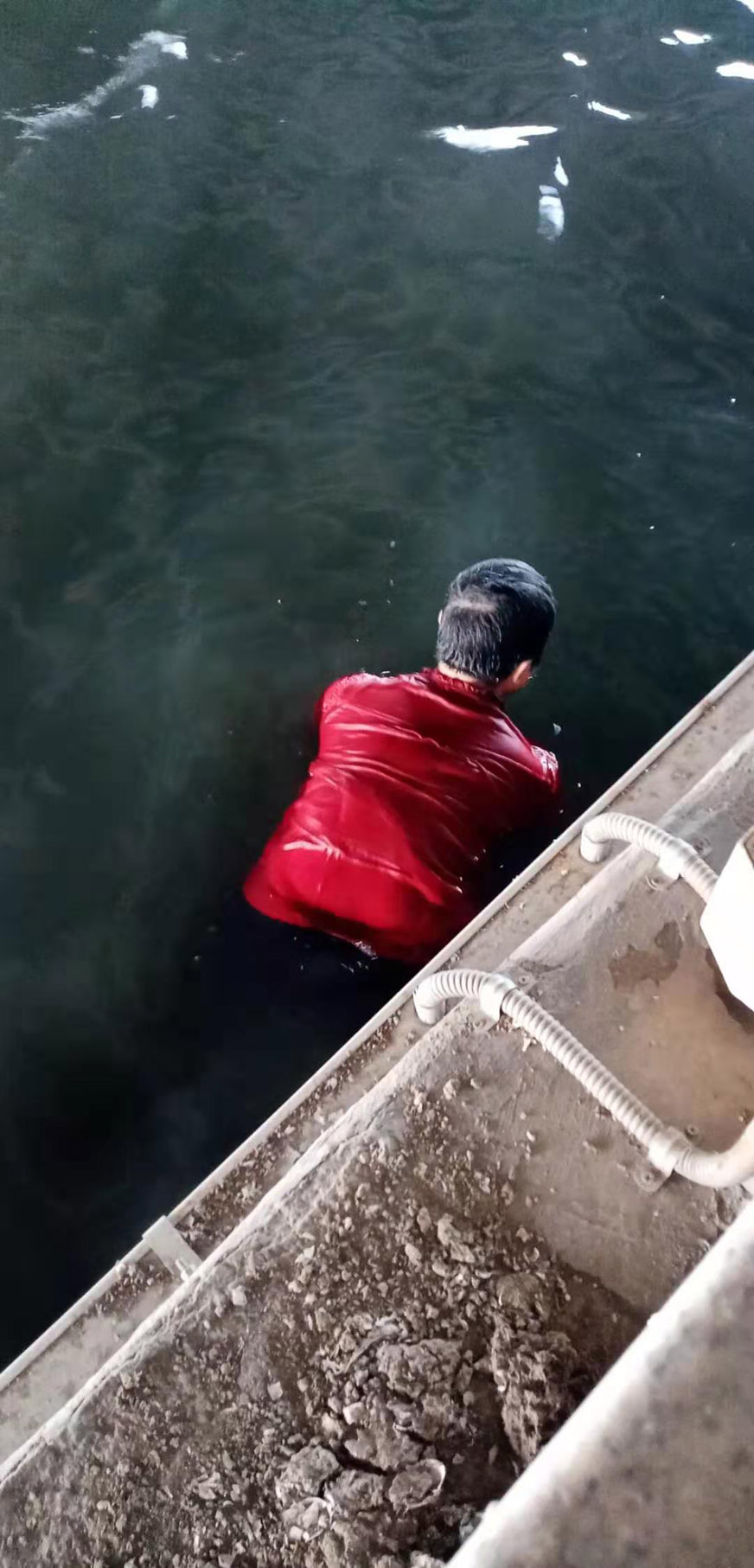 2019年10月15日上午6時22分左右,我司派駐廈門雅興船艇有限公司保安員吳仁財同志跟往常一樣在筼筜湖邊值守巡查(他的工作職責(zé)是負(fù)責(zé)筼筜湖岸上設(shè)施的安全和現(xiàn)場秩序的維護(hù)),當(dāng)他走到白鷺洲公園白鷺女神處經(jīng)過橋下處時,湖面上一個紅色物體不停浮動,職業(yè)的敏感性引起了吳仁財?shù)母叨染X,仔細(xì)一看,原來是一著紅色衣服的女人,臉朝水面,右手在石壁上不停比劃,慢慢地向著湖水深處移動。