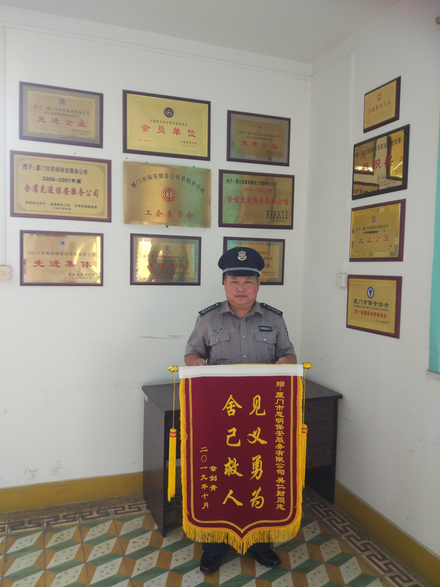 吳仁財同志是一個行事低調(diào)、不愛張揚(yáng)的人,他不希望別人知道他救人的事,若不是事主家屬到公司致謝,大家都不知道他不會游泳卻奮勇救人的善舉。“沒想那么多,當(dāng)時看到危急情況,只是一種本能而已。”這是吳仁財同志在交談中說的最多的一句話。沒有什么豪言壯語,但說的字字震撼人心。“見義勇為,舍己救人”錦旗上8個金黃的大字分外耀眼,小小的錦旗不僅包含著市民對保安員最真誠的謝意,也是對保安員吳仁財同志高尚品德的高度贊揚(yáng),更讓我們從一個普通的保安員身上看到了人性真、善、美的本能,他用實(shí)際行動展現(xiàn)了特區(qū)保安人的高尚品質(zhì)和良好的精神風(fēng)貌,向社會傳遞了源源不斷的暖心正能量。
