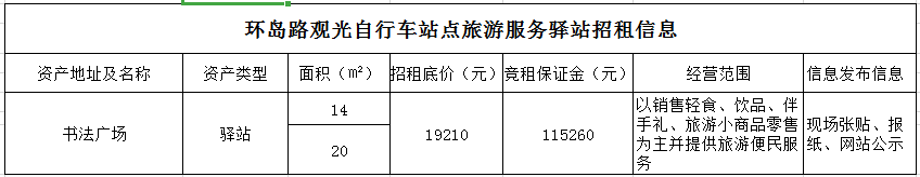 備注:意向承租人對上述情況應(yīng)有充分了解。詳細(xì)招租規(guī)則、合同、承諾函、報價單等招租文件于報名參加時領(lǐng)取。