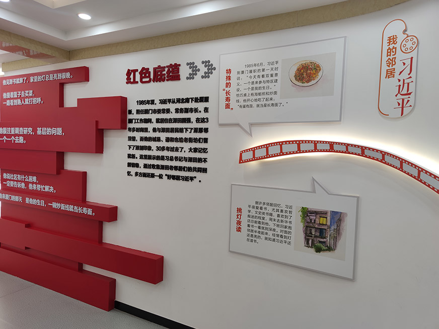 在政治生活館內(nèi),從特別的“長(zhǎng)壽面”、簡(jiǎn)樸的婚禮、一張手寫(xiě)明信片等一件件溫馨事跡,從觀看《我的鄰居習(xí)近平》錄像片到聽(tīng)小朋友生動(dòng)講述習(xí)爺爺?shù)墓适?,?ldquo;我可以叫你小習(xí)嗎”“伊是阮的好厝邊”及“深田讀冊(cè)歌”等小片段中,讓我們仿佛看到了當(dāng)年習(xí)近平總書(shū)記入鄉(xiāng)隨俗、與深田居民一起嘮嘮嗑、拉家常的生活場(chǎng)景,直觀感受了習(xí)近平總書(shū)記平易近人、誠(chéng)懇謙和、勤奮好學(xué)的優(yōu)秀品格以及一心為民、清廉務(wù)實(shí)的工作作風(fēng)。