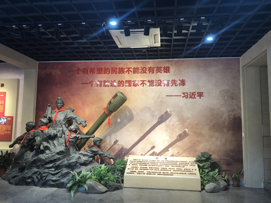 “英雄小八路”紀念館坐落于廈門島東南海防前線的何厝小學校內。展館依山傍水,與金門島隔海相望,是思明區(qū)委、區(qū)政府為民辦實事之一的教育工程,投資200萬,于2001年5月29日建成并正式開放。紀念館主體建筑面積400多平方米,總面積1000平方米。紀念館大門正中央刻著原福建省委書記、全國人大副委員長葉飛同志題寫的“英雄小八路”五個燙金大字。該展館分為上、下兩層,主要布展了“8˙23”炮戰(zhàn)模擬演示區(qū)、炮戰(zhàn)相關史料、“英雄小八路”的成長歷程、少先隊隊歌誕生紀實,以及新一代小八路繼承和發(fā)揚隊歌精神的活動記載。