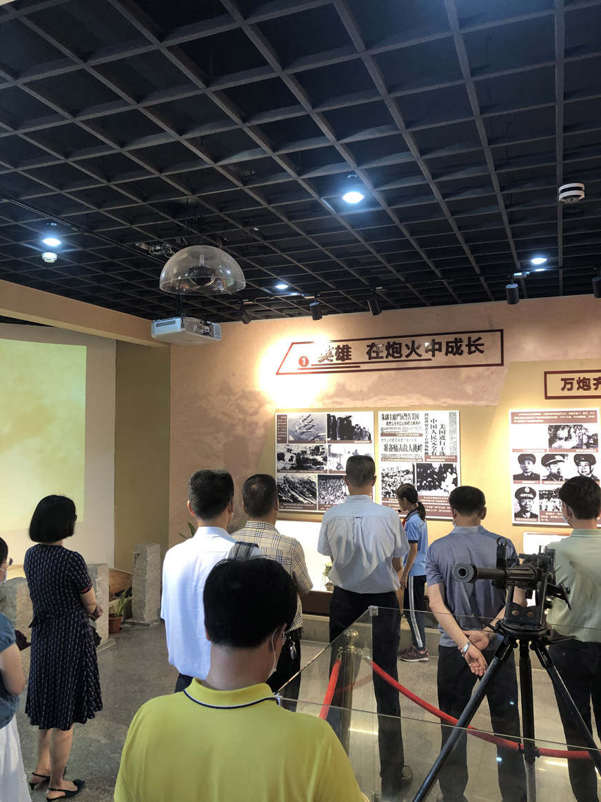 參觀過程中,通過何厝小學的師生的導學和現(xiàn)場環(huán)境氛圍的渲染,黨員同志清晰的了解到在50年代,盤踞在臺灣金門島的國民黨軍隊經常對大陸進行軍事挑釁,福建沿海許多和平的村莊被炸毀,許多村民被炸死。生活在福建前線的八個小學生在學校遷到后方之際主動留了下來,冒著槍林彈雨,成了“縫縫連連、洗洗涮涮、站崗放哨、擦擦炮彈、修筑工事、挑水送飯、送茶點煙、安電話線”的“什錦戰(zhàn)士”,有力地支援了前線的抗敵斗爭。因此,解放軍送給了他們一個光榮稱號——英雄小八路。