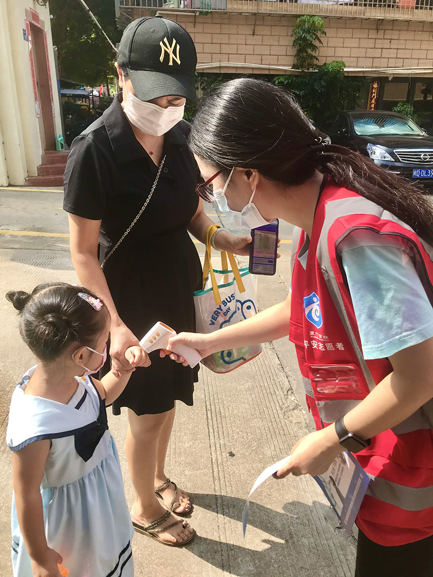 上午8時(shí),我們來(lái)到蓮云街道,手持測(cè)溫槍、檢查健康碼,發(fā)放和普及防疫宣傳資料。