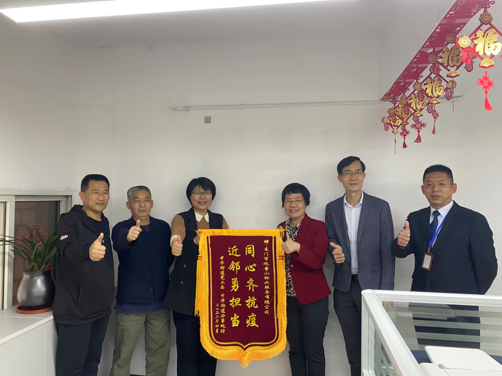4月20日下午,中華街道黨工委副書記、街道辦主任王雪梅率街道四級(jí)調(diào)研員嚴(yán)開松、黨政辦負(fù)責(zé)人蘇江圳一行給思明控股觀音山物業(yè)所屬中山路服務(wù)中心送上錦旗和慰問信,感謝思明控股集團(tuán)觀音山物業(yè)中山路服務(wù)中心團(tuán)隊(duì)全力配合協(xié)助街道疫情防控工作,對(duì)團(tuán)隊(duì)致以崇高的敬意和衷心的感謝。