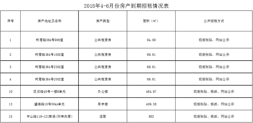 廈門市開元國有投資集團(tuán)有限公司房屋公開招租信息