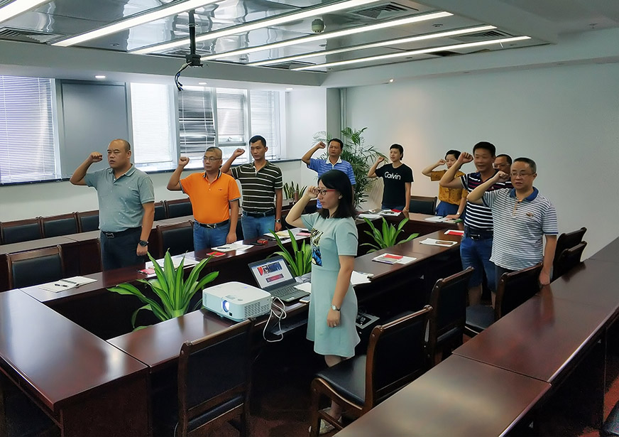 “我志愿加入中國共產(chǎn)黨,擁護(hù)黨的綱領(lǐng),遵守黨的章程……”跟隨2017年10月31日習(xí)近平總書記帶領(lǐng)中央政治局常委在中共一大會(huì)址重溫入黨誓詞的音頻,思環(huán)公司黨支部的黨員們莊嚴(yán)舉起右手,宣讀入黨誓詞。字字鏗鏘有力,句句激昂慷慨。這是思環(huán)公司黨支部慶祝建黨97周年主題活動(dòng)上的一幕。