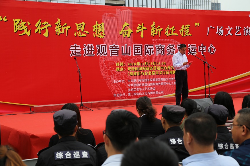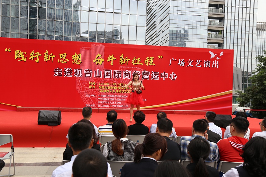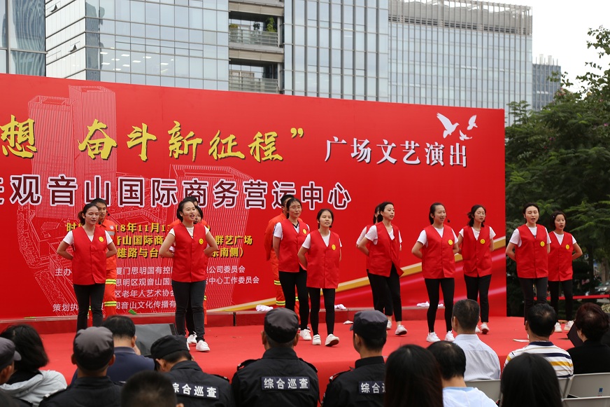 為深入學(xué)習(xí)貫徹習(xí)近平新時(shí)代中國(guó)特色社會(huì)主義思想,激勵(lì)園區(qū)企業(yè)以更加飽滿的精神風(fēng)貌,慶祝改革開放40周年,接續(xù)奮斗,11月13日下午,由思明控股集團(tuán)黨委聯(lián)合觀音山黨工委、思明區(qū)老年人藝術(shù)協(xié)會(huì)共同舉辦“踐行新思想,奮斗新征程” ——學(xué)習(xí)習(xí)近平新時(shí)代中國(guó)特色社會(huì)主義思想廣場(chǎng)文藝演出。