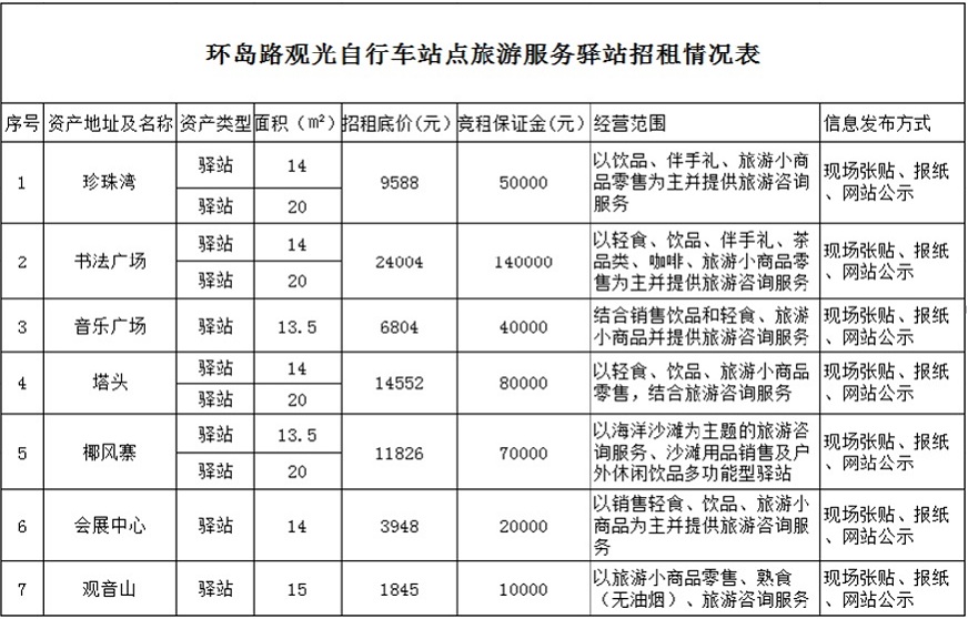 環(huán)島路觀光自行車站點(diǎn)旅游服務(wù)驛站公開招租