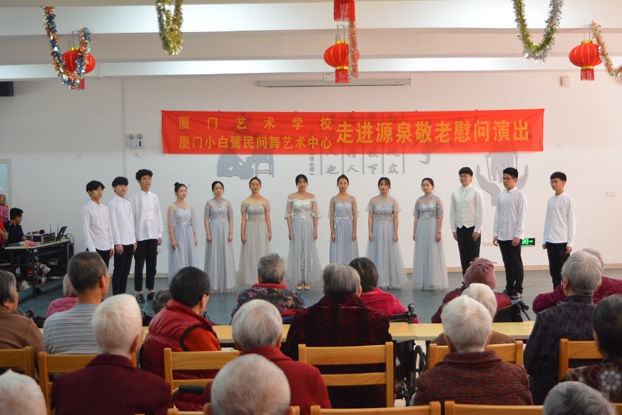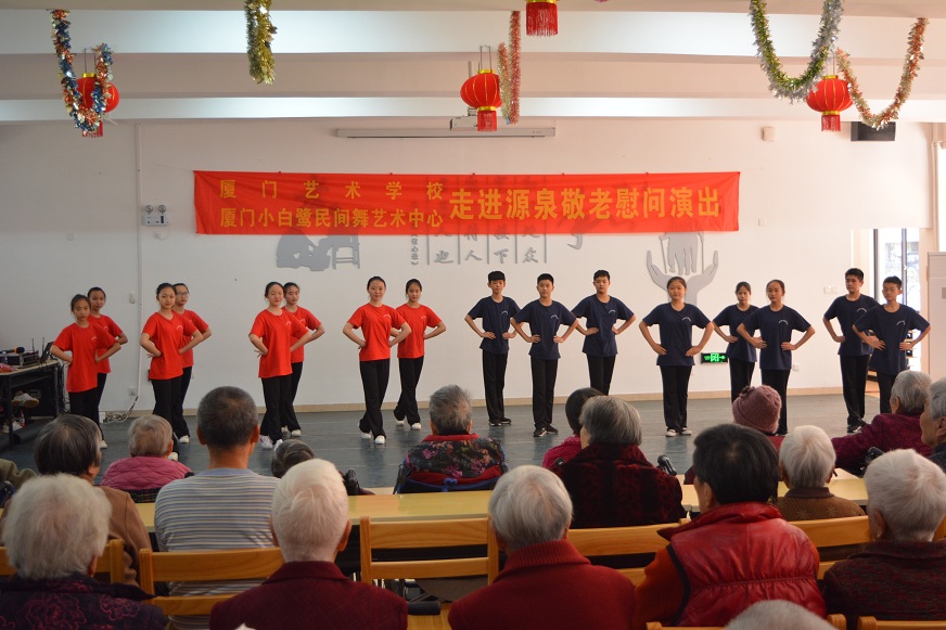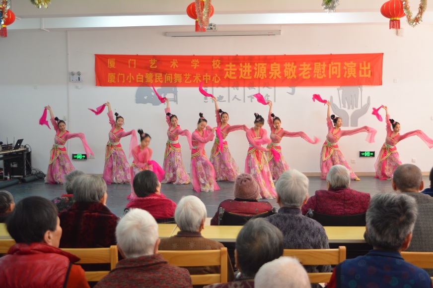 陽(yáng)春三月,萬(wàn)物復(fù)蘇。在這個(gè)美好的季節(jié)里,源泉山莊老年公寓飛來(lái)一只可愛(ài)的“小白鷺”——最受群眾喜愛(ài)的廈門(mén)小白鷺民間舞團(tuán)。這已是廈門(mén)小白鷺民間舞藝術(shù)中心和廈門(mén)藝術(shù)學(xué)校第四個(gè)年頭來(lái)到源泉山莊老年公寓,為住在老年公寓里的長(zhǎng)者們舉辦慰問(wèn)演出,在今年春天又一次給長(zhǎng)者們帶來(lái)了一場(chǎng)美好的感受和豐富的文化盛宴。
